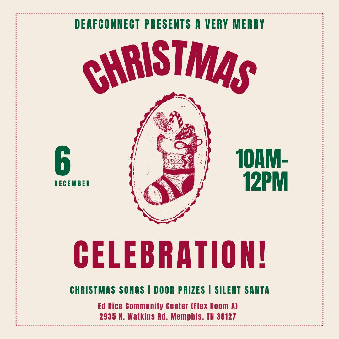 Join us this Saturday, December 6th, 10am–12pm at the Ed Rice Community Center (2935 N. Watkins) for our DeafConnect Christmas Celebration!